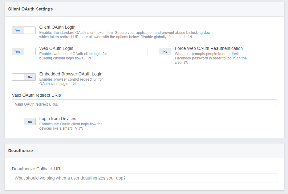 Fill the Valid OAuth redirect URIs with the Redirect URI provided by Banco Internacional EC ID External Provider's page, available in the Facebook panel, and select Save Changes.