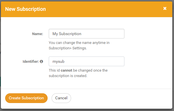 When creating your subscription you will be asked to provide a namespace, which is a short string that uniquely identifies the subscription: