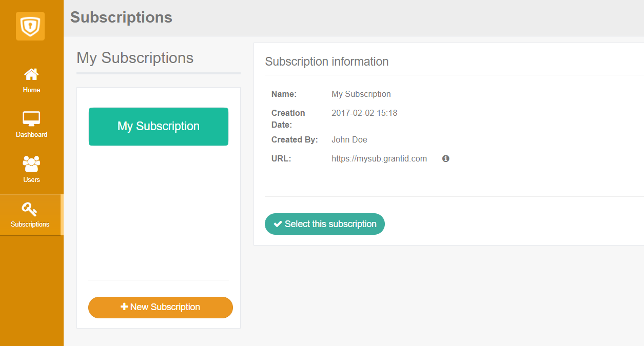 After the subscription is created you will be prompted your subscrition details. There, you will be able to see it has received a custom URL based on the namespace provided: