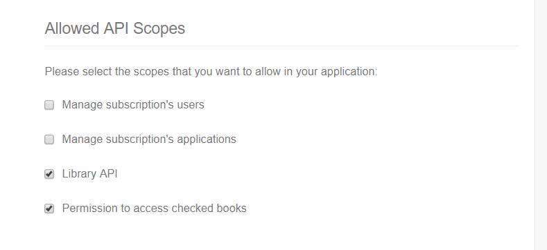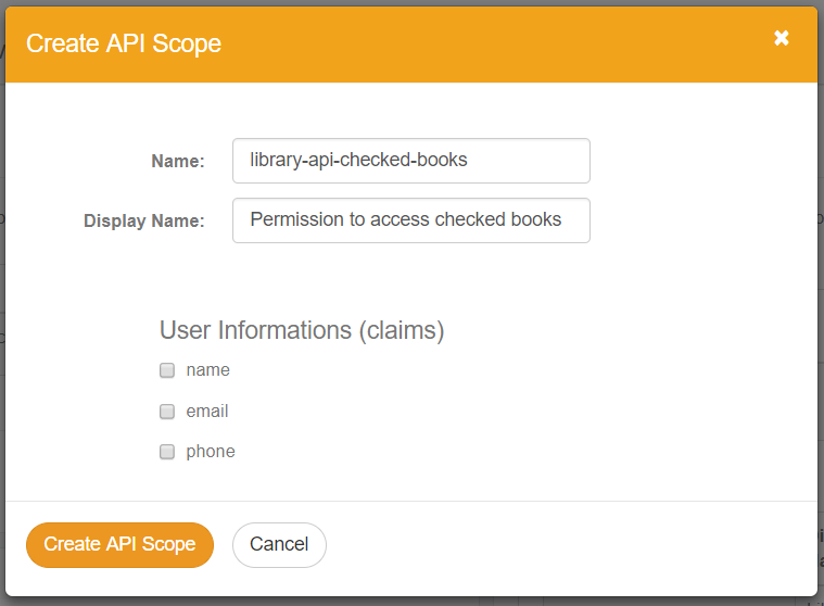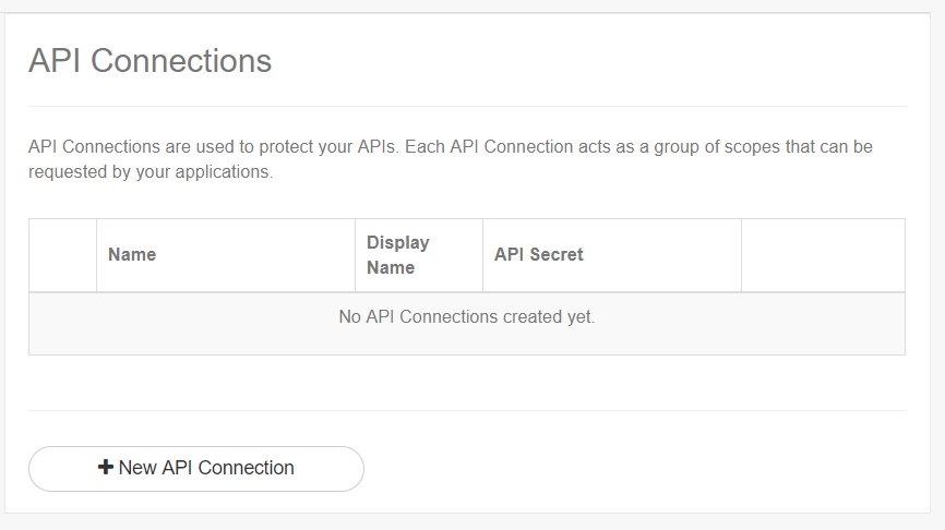 In order to protect a resource, you need to define API Scopes which are grouped by API Connections. Let's assume that one of your applications is a library website and that your users need to be able to view the books they have checked out.