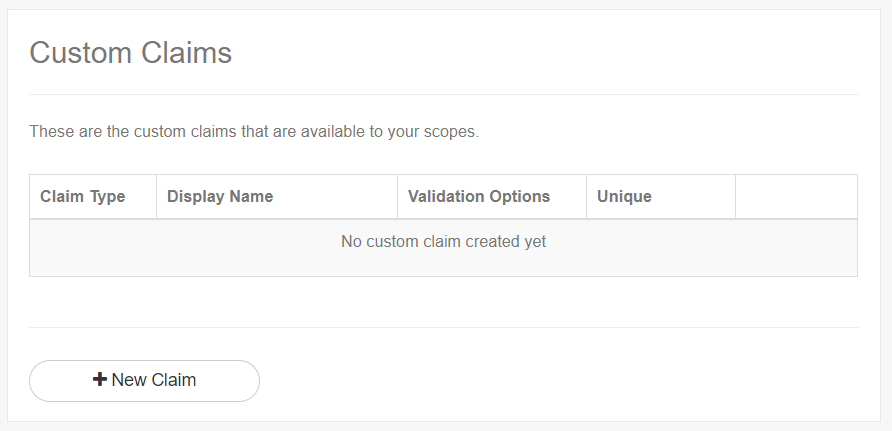 Go to your subscription's home page and select the Scopes tab. In the Custom Claims, section click the button to add a New Claim: